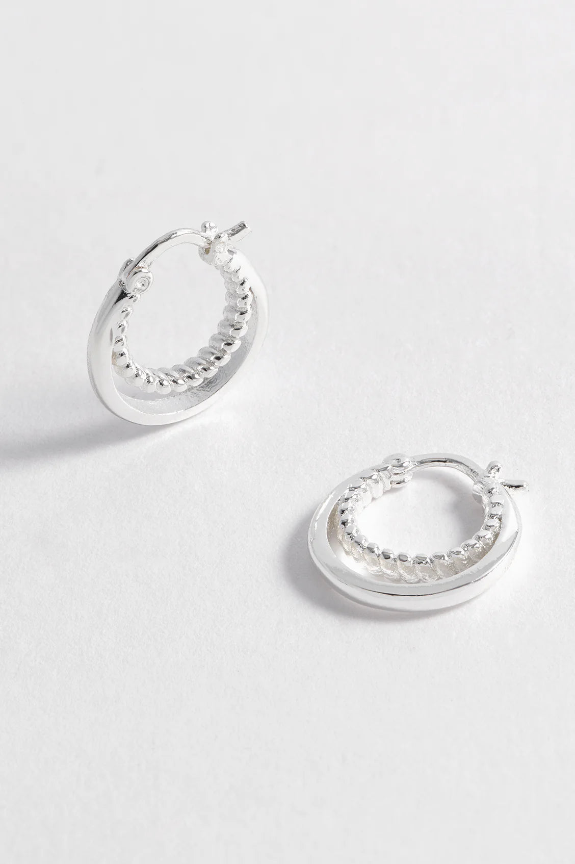 The classic hoop earring, elevated. Add texture and dimension to your look with our silver-plated Twisted Double Hoops. These earrings are versatile and can be styled with a variety of looks.
