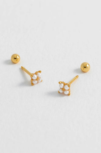 Estella Bartlett - Mini Pearl Flower Studs Gold Plated | Pearl