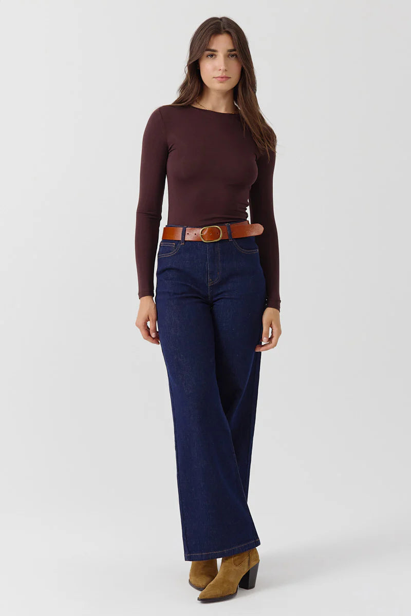 Black long-sleeved second-skin top. Fitted cut and classic crew neck. Stretchy comfort, ideal for layering or wearing on its own.