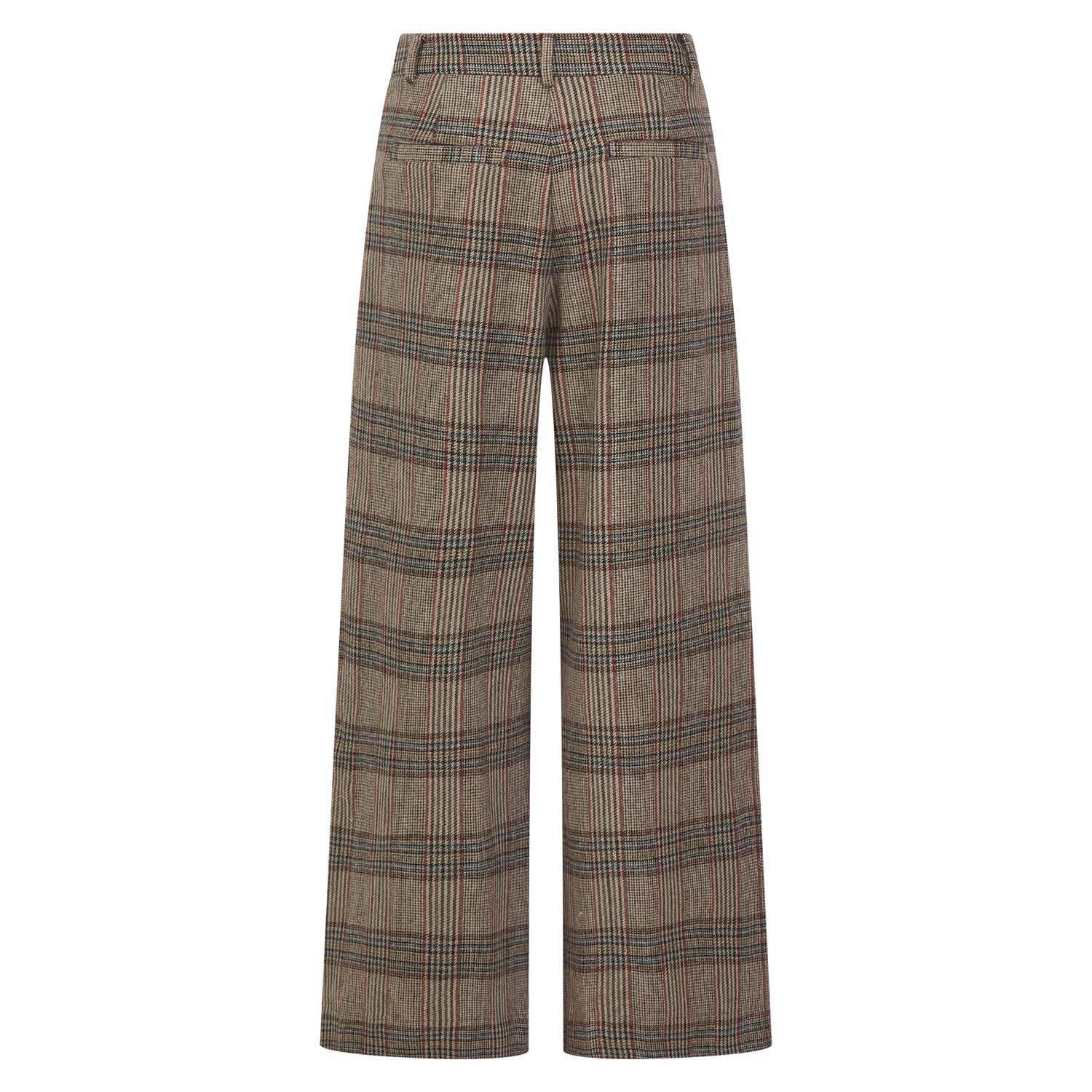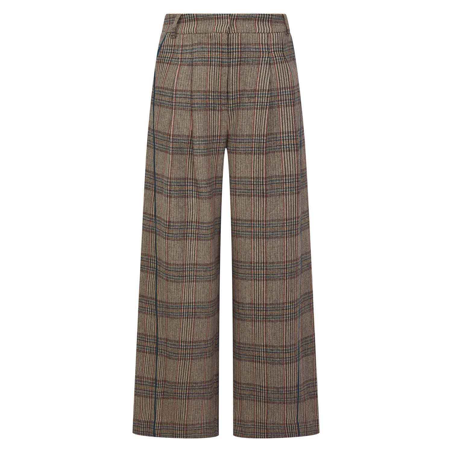 The Regan Check Trousers feature a modern check weave in a classic camel mix, combining timeless style with contemporary flair.