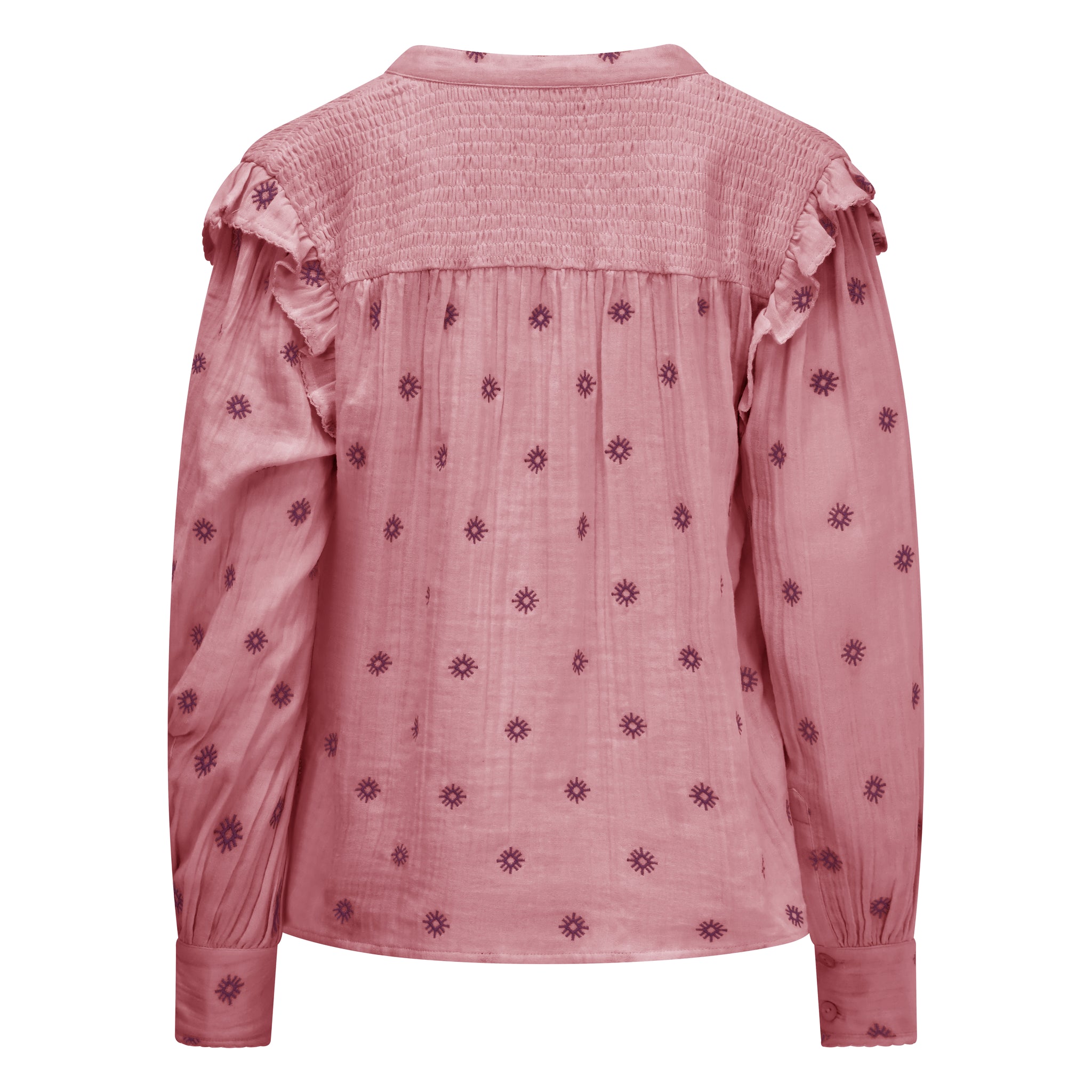 One collective - smocked yolk blouse - soft pink & wine tasting