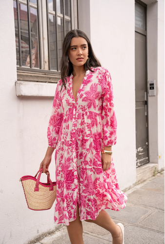 Choklate - Printed Silk Shirt Dress, Mid Length