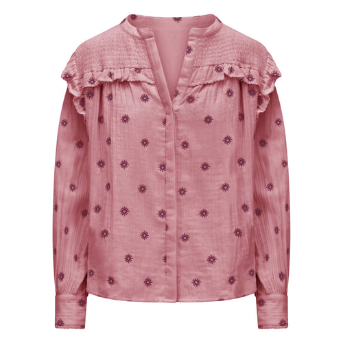 One collective - smocked yolk blouse - soft pink & wine tasting